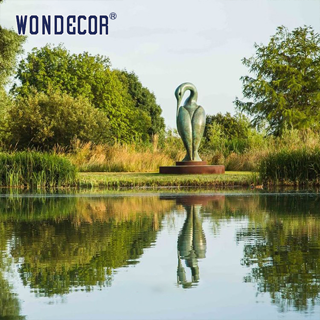 ประติมากรรมนกน้ำมักใช้ในสำนักงานขาย ลานบ้าน สวนสาธารณะ และสถานที่อื่นๆ เพื่อสื่อถึงบรรยากาศที่สงบและมีชีวิตชีวาผ่านการเคลื่อนไหวของนก เช่น การกางปีกและการพักผ่อน ตัวอย่างเช่น ประติมากรรมนกกระยางขาวตั้งอยู่ริมขอบสระน้ำ และเมื่อลมพัดบนผิวน้ำ เงาของนกจะแกว่งไปมา กลายเป็นจุดศูนย์กลางของภาพ การติดตั้งคุณสมบัติทางน้ำแบบโต้ตอบช่วยเพิ่มผลกระทบและการโต้ตอบทางภาพผ่านการออกแบบการเจาะงานศิลปะในท้องถิ่น