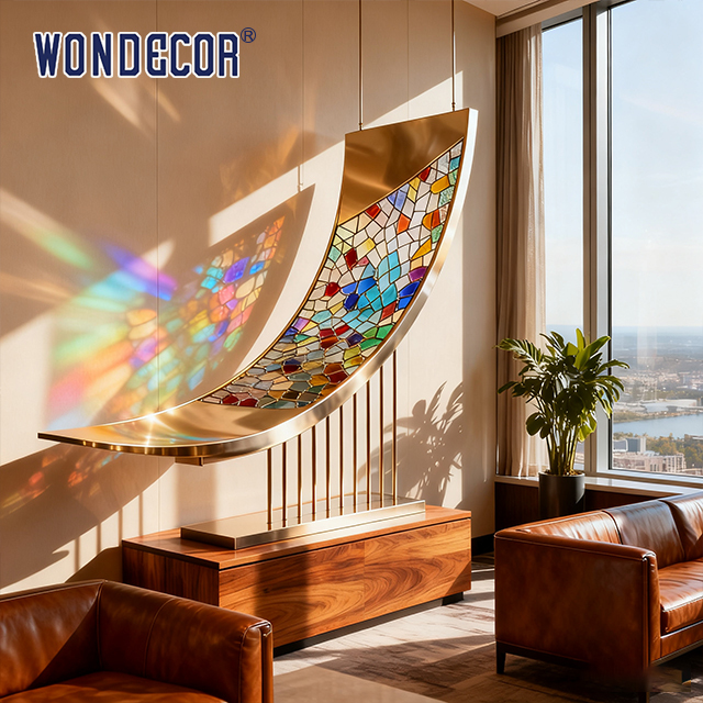 - Excellent Durability: Stainless steel offers strong corrosion and deformation resistance, maintaining the sculpture's shape and luster over time. The high-hardness stained glass provides excellent impact resistance and weather resistance, preventing damage and fading from minor collisions or environmental changes, thereby reducing maintenance costs and meeting long-term hotel operational needs.