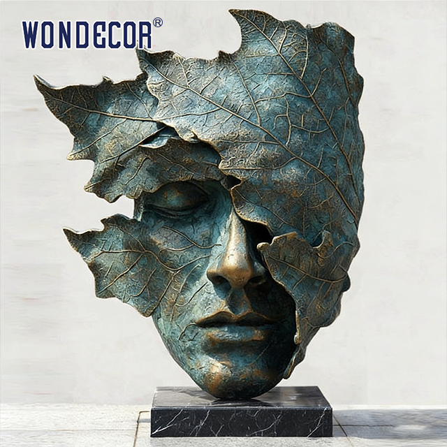 | เน้น | outdoor bronze leaf face statue,abstract art bronze sculpture,bronze leaf face garden statue |